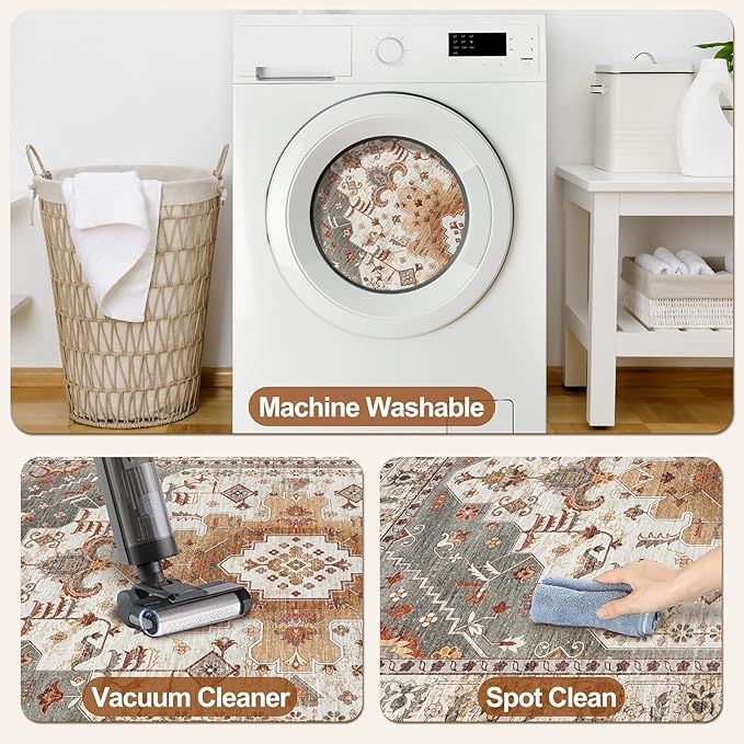 - 【Non-Slip Backing】Experience peace of mind with every step on our vintage area rug, featuring an innovative TPE non-slip rubber backing. Designed to keep your carpet securely anchored, it effortlessly holds its ground against movement and slippage. Provides safety and stability for high-traffic areas such as entrances or front doors, reducing the likelihood of people and pets slipping, making it easy to walk and play