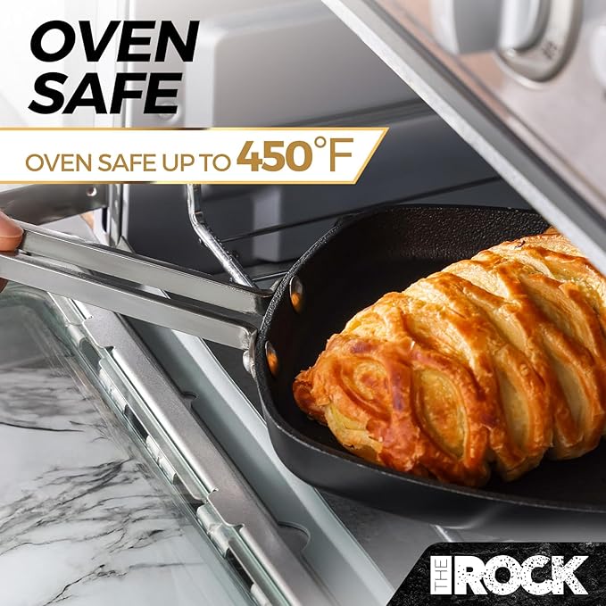 - THE ROCK 4 piece mini cookware set includes 6” Mini Fry Pan, 0.73 quart Mini Sauce Pan, 7.25” Mini Stir Fry Pan, and 6” Mini Griddle, covering all your cooking needs in the kitchen