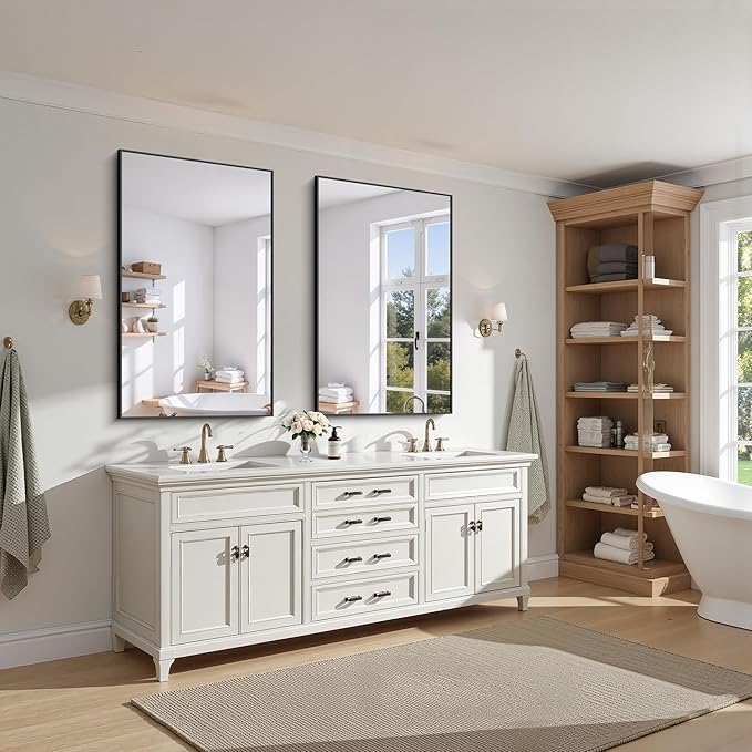 - Modern Design: KOCUUY 30x48 black vanity mirror features an innovative design that adds a fashionable touch. With classic square corners, it allows creativity and functionality in bathrooms, bedrooms, entryways, and more. Express your personal style with this versatile mirror.