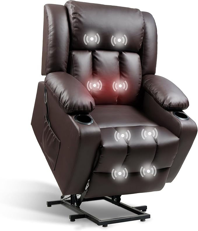 FLEXISPOT XL31 Power Lift Recliner Chair for Elderly, Electric Lift Chair with Massage & Heat, PU Leather Reclining Sofa w/Cup Holders, Side Pockets for Living Room Bedroom(Medium Size,Brown)