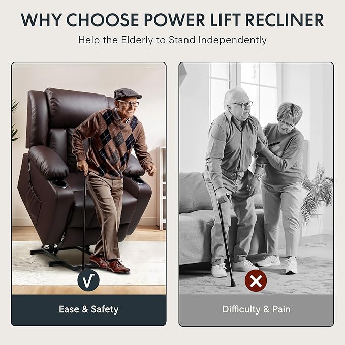 - 【Power Lift Chair for Seniors & Recovery】 – Ideal for elderly, post-surgery recovery, or anyone with knee, hip, or back issues, this electric lift chair makes standing up safe and effortless. The smooth, quiet motor gently tilts the chair forward with one button press, reducing strain on joints and helping you maintain independence at home.
