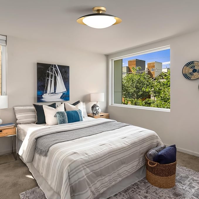 - Modern Sleek Design: Elevate the aesthetics of your interior with our modern semi flush mount design. The streamlined profile seamlessly integrates into your ceiling, offering a sleek and stylish look