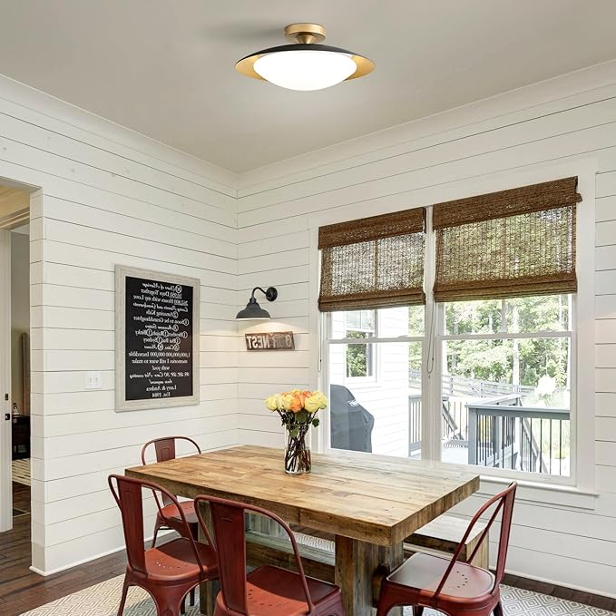- Size and Material: The black and gold ceiling lamp diameter is 15.75 in X 5.5 in. The farmhouse ceiling light color temperature is selectable. Make with metal and acrylic lampshade. It is a good choice for your home