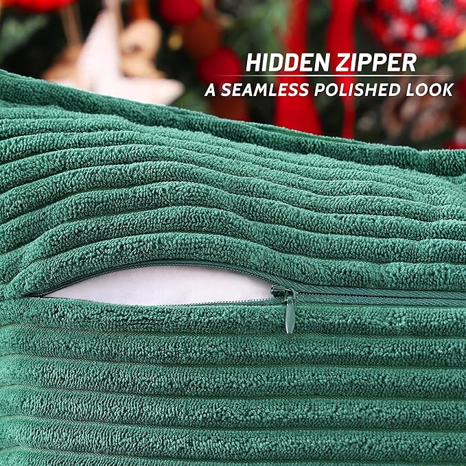 - Hidden Zipper: The timeless green pillow covers feature a hidden zipper along one edge, creating a sleek, seamless look. The generously sized opening allows easy removal or insertion of pillows for seasonal updates