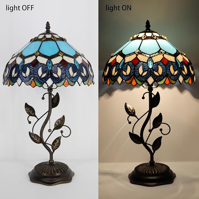 - Versatile Lighting: This Tiffany-style table lamp features a 12-inch shade diameter and stands 19 inches tall Resin base with iron metal leaves finished bronze, simple assembly.