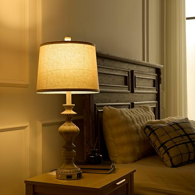 - 【Vintage Design】 Bedroom lamps set of 2 with mid century style, with elegant linen, handmade body, simple and classic style is the finishing touch to your home decor, perfect for living room, bedroom, farmhouse, dining room, study, entryway and any corner of the home