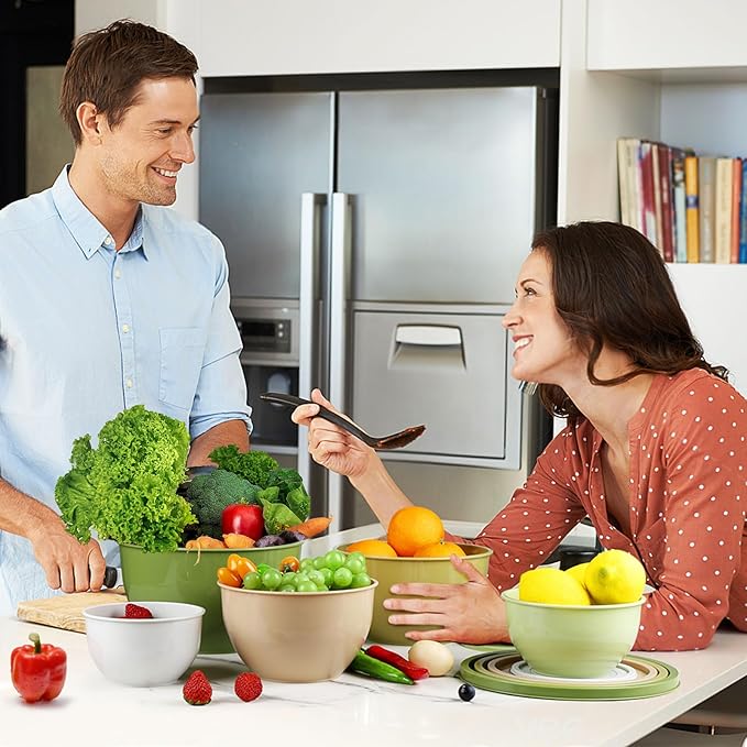 - 🍓【Multi-use to Meet Your Needs】- Mixing bowl set with lids includes 5 sizes (0.85/1.37/2.33/3.38/5QT), making it easy to find the right serving bowls for any kitchen task or food storage containers need. The nesting bowls are perfect for mixing, stirring, preparing, and serving food, making this plastic bowls the perfect set for a variety of prep, baking, and home entertaining styles.