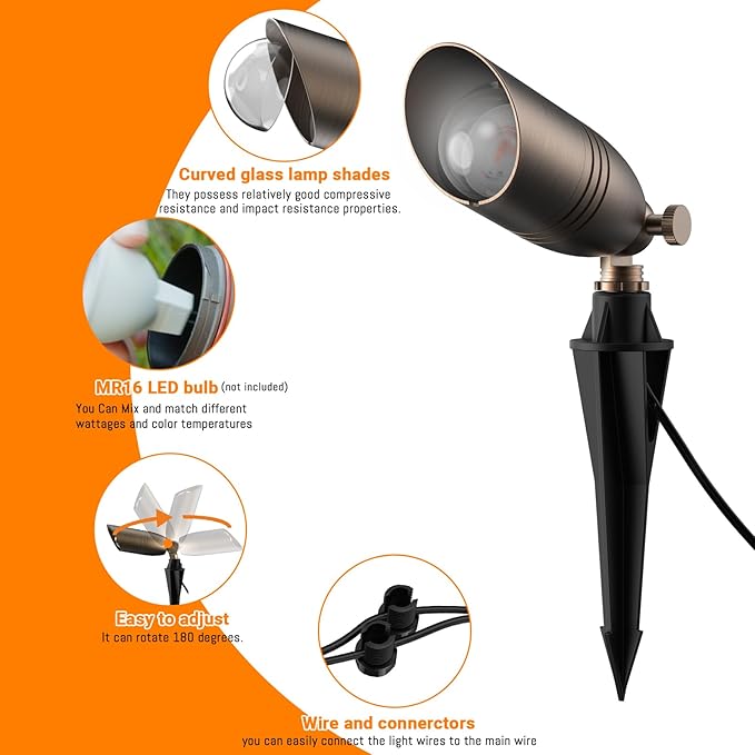 - 【ULTIMATE SAFETY ASSURANCE】--- Rest easy with our UL certified system, operating at a safe 12V through standard outdoor transformers. Each unit comes complete with a heavy-duty ground stake and 4ft premium copper wiring, ensuring reliable performance and total peace of mind. Your safety is our top priority!