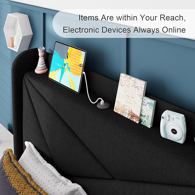 - Special Feature : Heavy-Duty Metal Frame, PD Type-C Fast Charging Station, Soft Linen Fabric, Squeak Resistant, Storage Wingback Headboard Heavy-Duty Metal Frame, PD Type-C Fast Charging Station, Soft Linen Fabric, Squeak Resistant, Storage Wingback Headboard