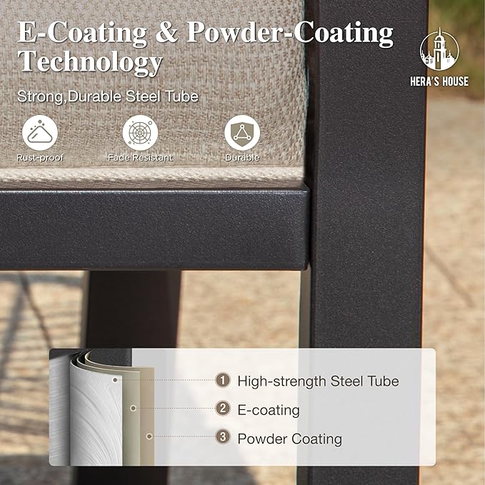 - 【ALL WEATHER USE】Special CUSHION PRO technology applied on the fabric of this table and chairs set. It makes the dirt be easily wiped down. Water-proof, oil-proof and can be easily removed with the L-shaped zipper design