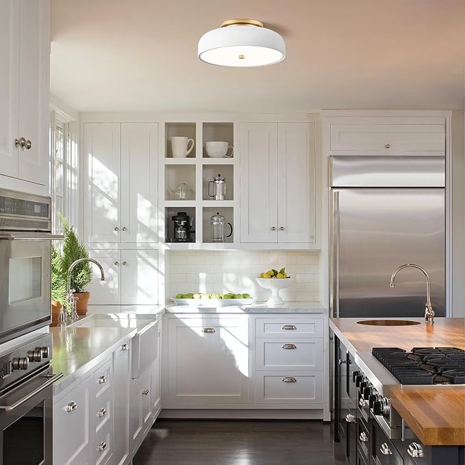- Unique Design: The kitchen flush mount ceiling light size is 11.8 in X 4.7 in. The ceiling lights are made of metal and acrylic. The modern design adds a eleglant touch, making it a stunning and stylish