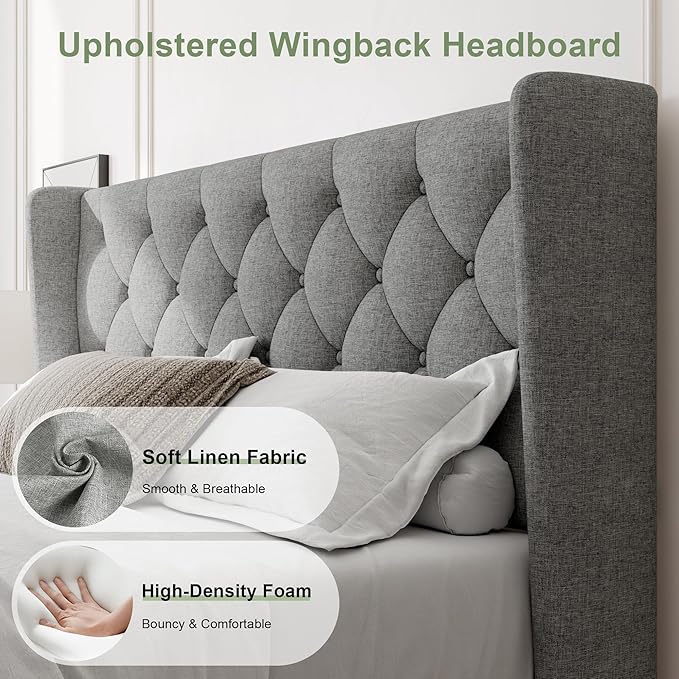 - Special Feature : 8" Under-Bed Storage, Modern & Classic Style, Noise-Free, Upgraded Heavy-Duty Structure, Upholstered Wingback Headboard 8" Under-Bed Storage, Modern & Classic Style, Noise-Free, Upgraded Heavy-Duty Structure, Upholstered Wingback Headboard