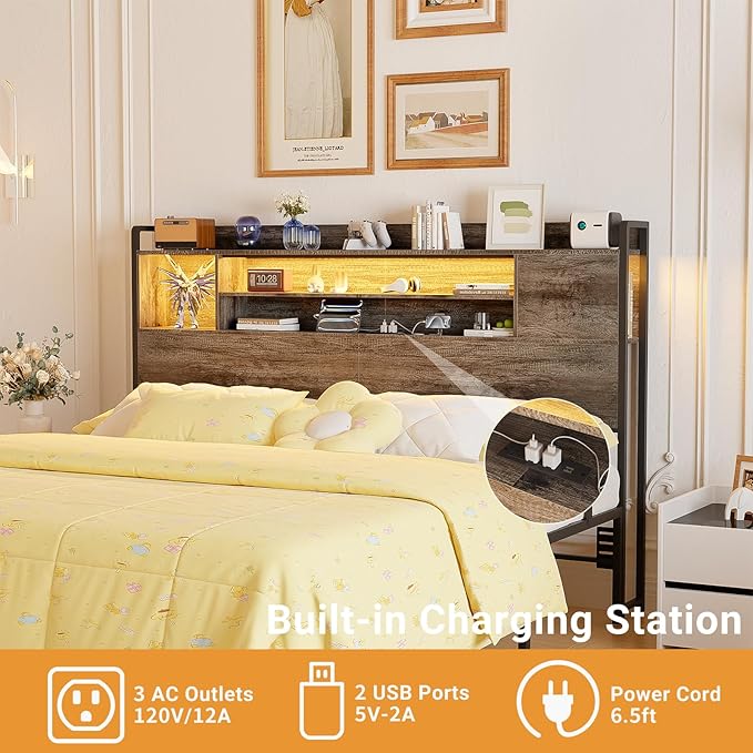 - 【Built-in Charging Station & Convenient】The Headboard features 3 AC power outlets & 2 USB charging ports, with a 6.5ft power cord, allowing you to flexibly charge your mobile phones, tablets, headphones, book lights and other electronic devices while relaxing, without having to get up to search for an outlet .