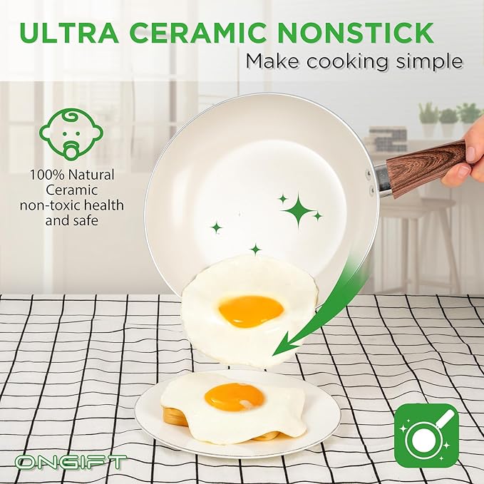 - Easy to Clean: Ceramic cookware set requires less oil to cook, preventing food from sticking simply wipe with a paper towel or rinse with water to save time and water, making cooking at home healthier and easier