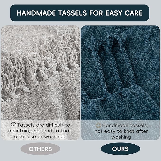 - 【Sturdy & Stylish】Our chenille blankets are made with a superior weave, very well constructed and will not shed, warp or break. Also, the fashionable fringe design adds a touch of style to any space. Whether you're looking to enhance the beauty of your living room or bedroom, the stylish details of this blanket will easily elevate your decor