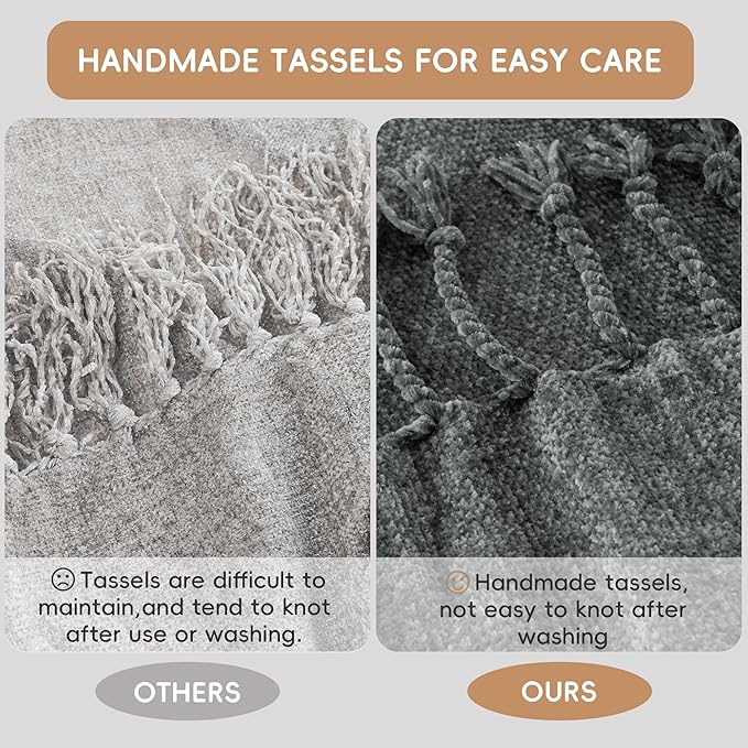 - 【Sturdy & Stylish】Our chenille blankets are made with a superior weave, very well constructed and will not shed, warp or break. Also, the fashionable fringe design adds a touch of style to any space. Whether you're looking to enhance the beauty of your living room or bedroom, the stylish details of this blanket will easily elevate your decor