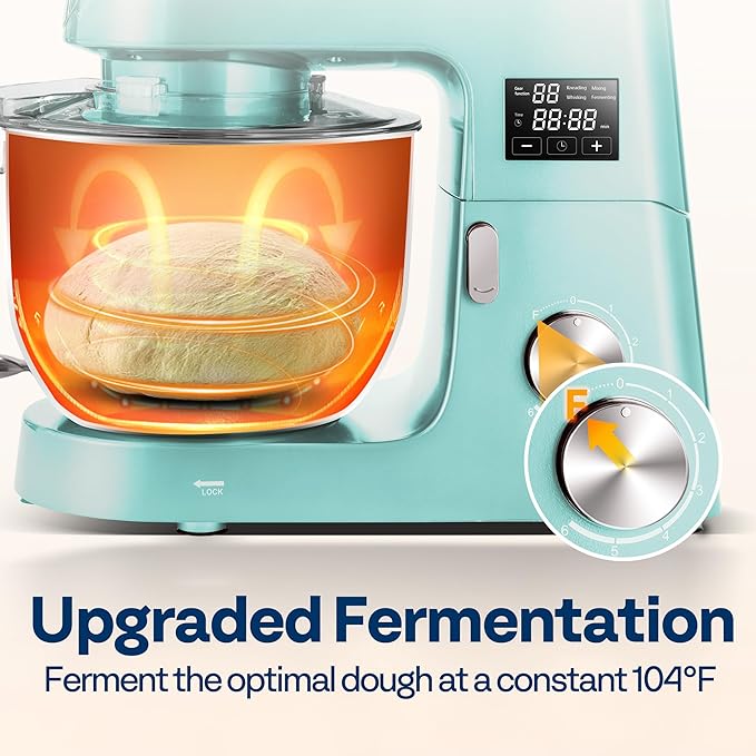 - 6 SPEEDS & FERMENTATION MODE: Choose from six precise speeds or use the upgraded F setting for fermentation, perfect for making dough rise at the ideal temperature; Its 360° planetary mixing design ensures that the attachments make even contact with the ingredients in the bowl, mixing them thoroughly and evenly, resulting in better-tasting food for a variety of recipes