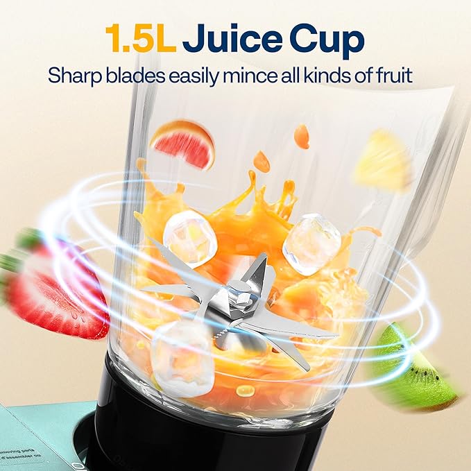 - LARGE 7.5QT CAPACITY: The stainless steel 7.5 qt mixing bowl, made with 304 stainless steel, ensures durability and can handle large batches like 30 egg whites or dough for bread and cakes; The locking groove design keeps the bowl firmly in place for stable operation; The 1.5 L glass blender jar allows you to prepare healthy vegetable juices, smoothies, or milkshakes for family and friends