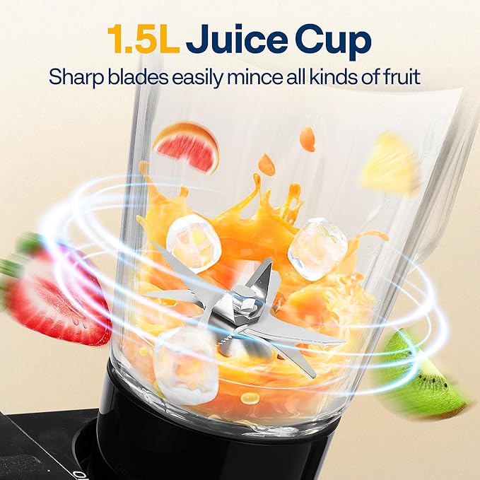 - LARGE 7.5QT CAPACITY: The stainless steel 7.5 qt mixing bowl, made with 304 stainless steel, ensures durability and can handle large batches like 30 egg whites or dough for bread and cakes; The locking groove design keeps the bowl firmly in place for stable operation; The 1.5 L glass blender jar allows you to prepare healthy vegetable juices, smoothies, or milkshakes for family and friends