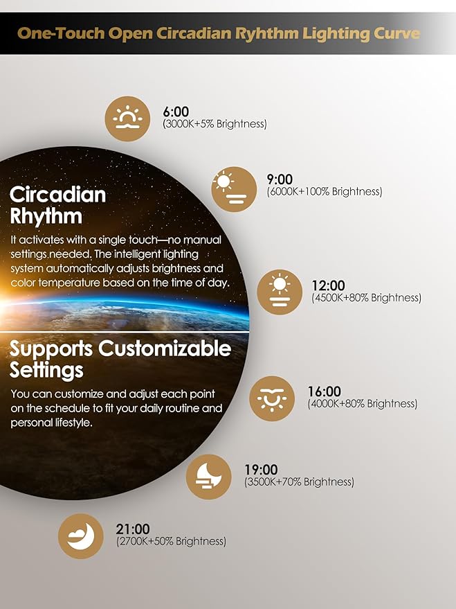 - One-Touch Circadian Rhythm: GLOWRIUM Happy lamp features a unique circadian rhythm mode that activates with a single touch—no manual settings needed. The intelligent lighting system automatically adjusts brightness and color temperature according to the time of day.