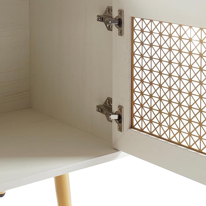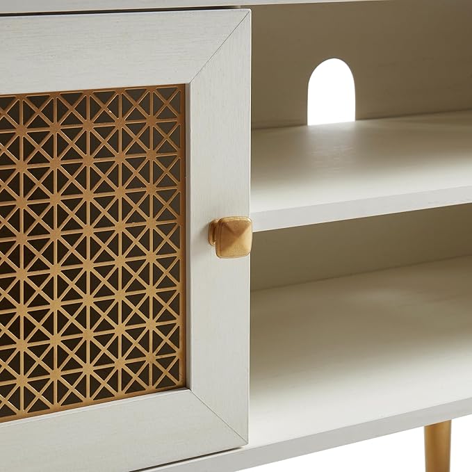 - Mid-century Style TV Stand: The perfect fusion of wooden appearance and golden metal mesh door endows this TV stand with a unique medieval Bohemian aesthetic, effortlessly enhancing its elegance.