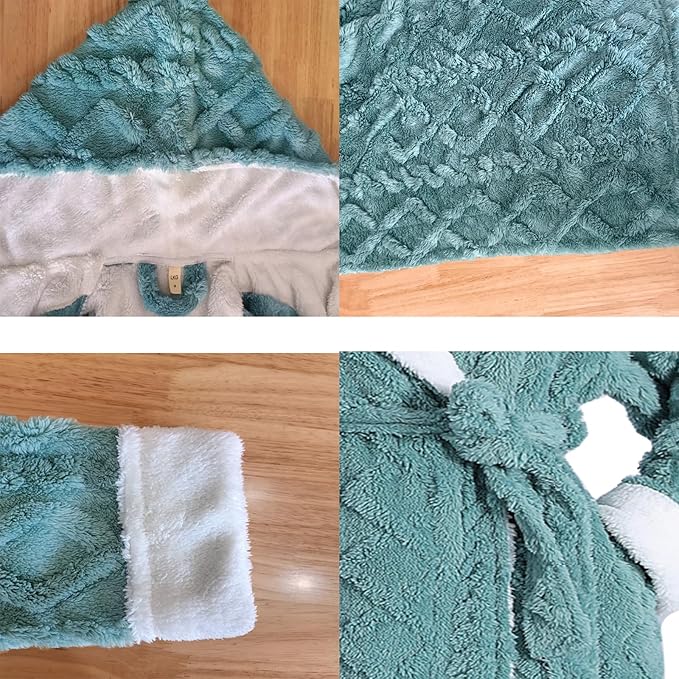 - LKG Women bathrobe Thick and Loose- Plush Soft Warm Hooded Robes for Women.Fluffy plush long robe and super warm robes for women. Lightweight plush long loungwear robe with hood. Delicate and Unique Design,soft as baby's skin,not easy to shed, not shrink after washing.Easy Care,machine wash and tumble dry low heat.