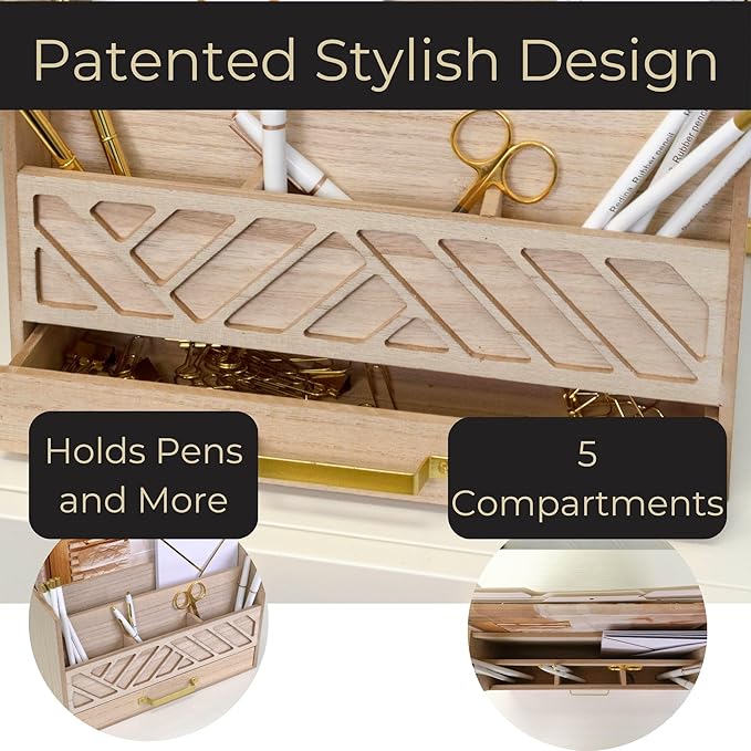 - Durable and Space-Saving Design – Crafted from sturdy natural wood, this compact organizer fits on any desk while maximizing storage space.