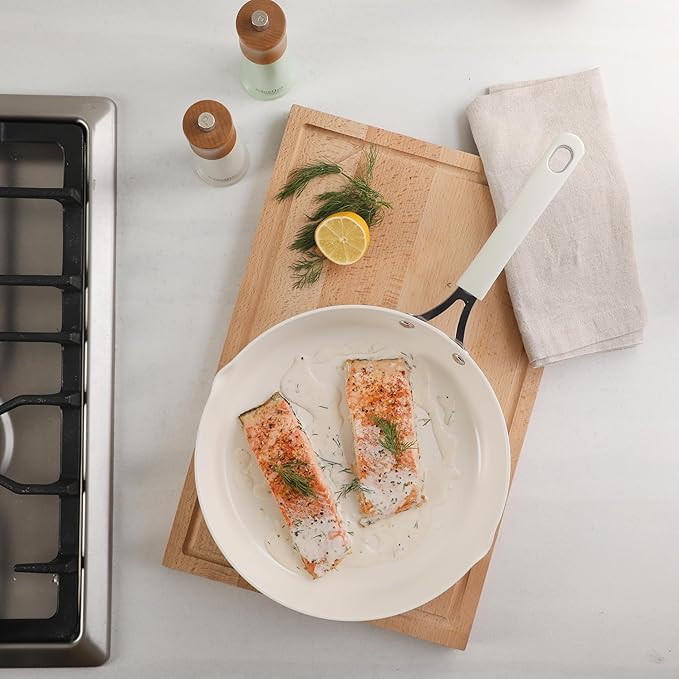 Martha Stewart Heathland 11 Inch Aluminum Fry Pan with Premium Ceramic Non-Stick Coating - Kitchen & Omelet Pan, Linen White, Induction Safe