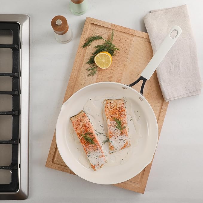 - MADE WITHOUT PFOA, PTFE, lead or cadmium: Smooth ceramic nonstick interior takes the stress away from cleaning after every use while maintaining healthier cooking alternatives with less fat or oil.