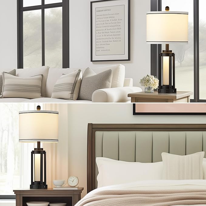 - Industrial Modern Design:The table lamp offer a well-crafted industrial design with a unique feature of dual night lights, making multiple lighting options. The pretty fabric lampshade complements the black metal lamp stand, creating an elegant style with a warm 2700K glow. The lampstand's metal column and layered design allow the nightlight glow to warmly permeate, adding an comfortable vibe to your home space!
