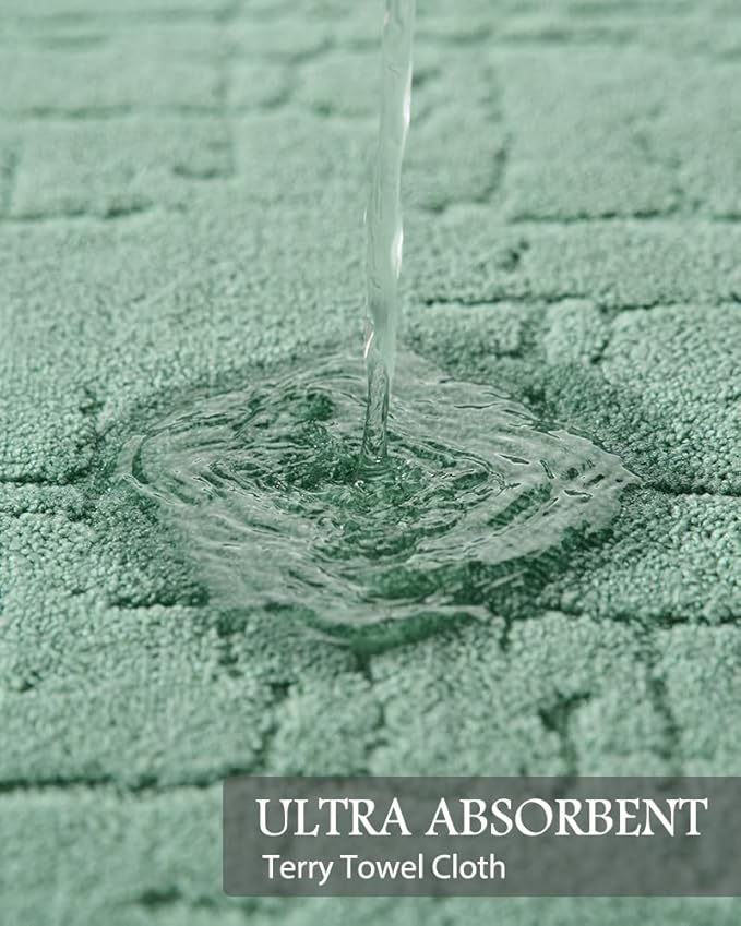 - ABSORBENT & QUICK DRY:Super Absorbent bathroom rug. 100% high-end terry surface, made of extra dense and short fuzzy fibers. Provide twice absorption than normal polyester or polypropylene bathroom mat. Moreover, short fuzzy fibers dry remarkably quickly.Always keep your bathroom clean and tidy.