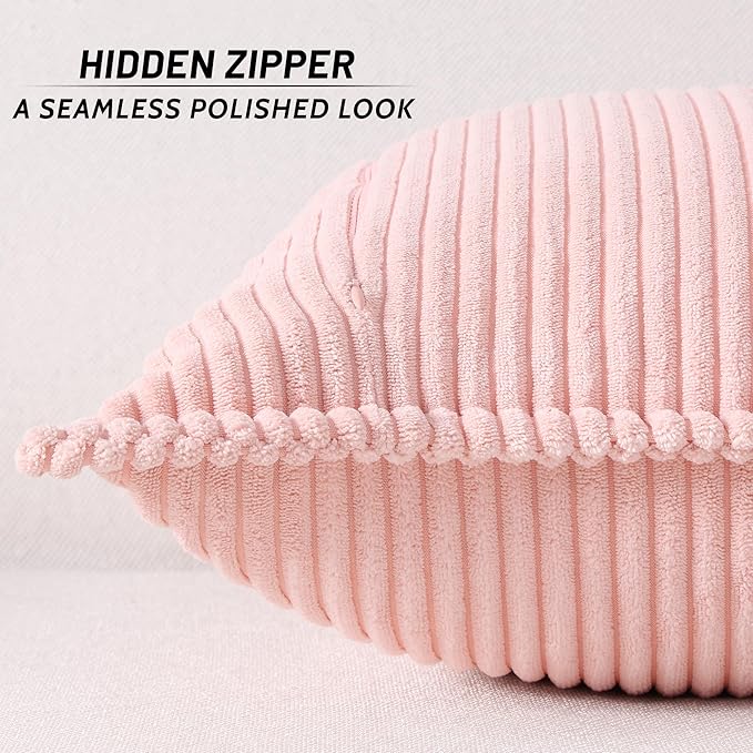 Mecatny Corduroy Throw Pillow Covers 12x20 Set of 2, Neutral Decorative Soft Boho Lumbar Couch Pillow Covers with Broadside for Sofa Living Room, Pink