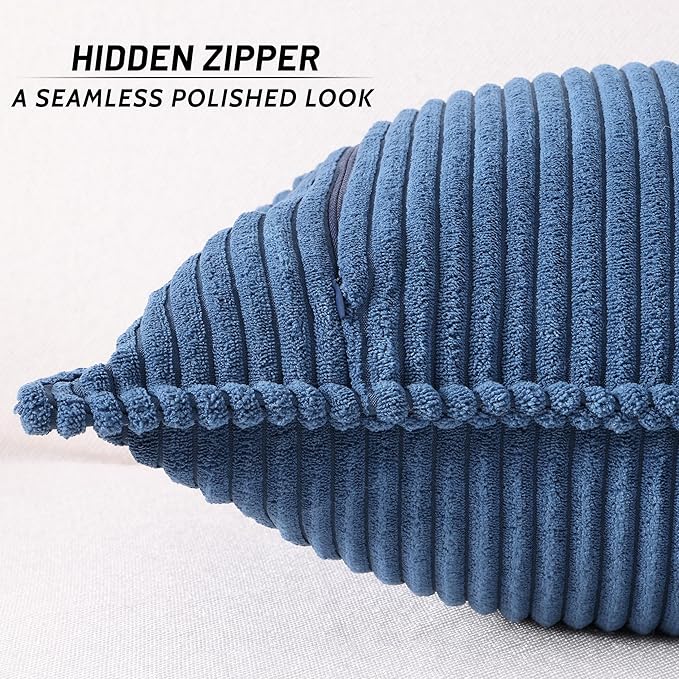 Mecatny Corduroy Throw Pillow Covers 18x18 Set of 2, Neutral Decorative Soft Boho Couch Pillow Covers with Broadside for Sofa Living Room, Navy