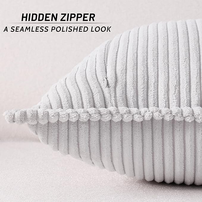 Mecatny Corduroy Throw Pillow Covers 18x18 Set of 2, Neutral Decorative Soft Boho Couch Pillow Covers with Broadside for Sofa Living Room, Grey