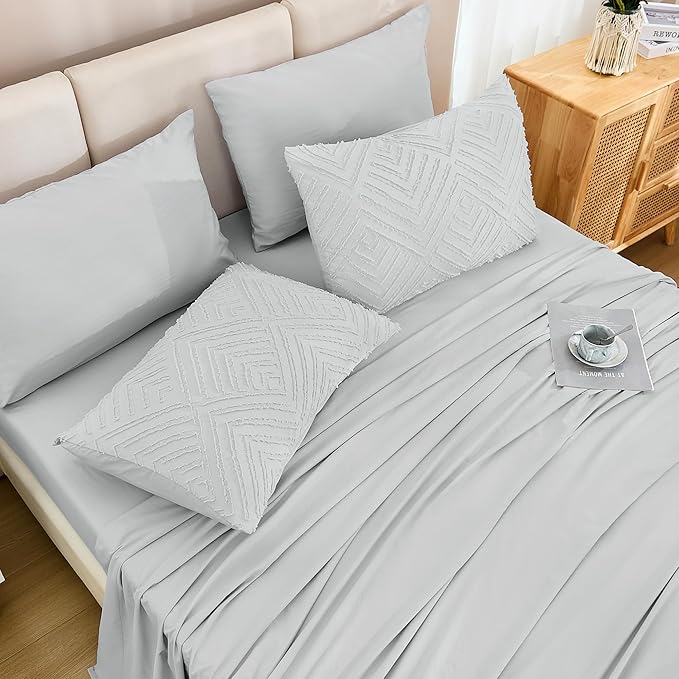 - Easy to Clean: Machine wash in a gentle cycle with cold water, and tumble dry on low heat if needed. After washing and drying it, it came out perfectly! No need to iron or anything. You can keep the light grey bedding looking like new with minimal effort, making it perfect for busy lifestyles.