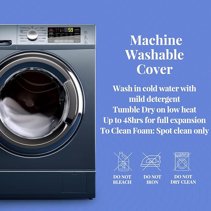 - Fill: 100% Polyester, Cover: 64% Polyester, 36% Polyethylene
