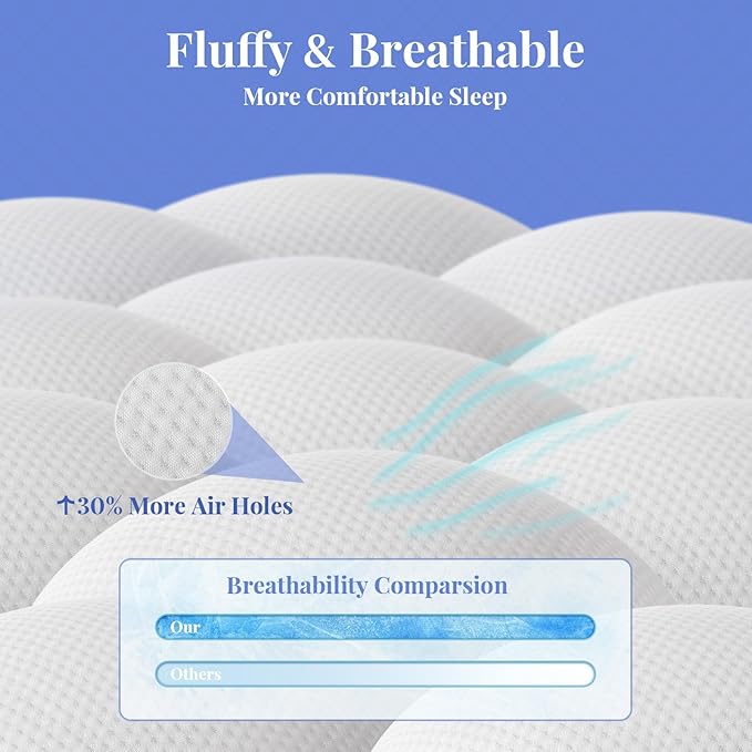 - Refresh & Soften a Firm Mattress: Perfect for firm mattresses, this topper softens the surface and relieves pressure points—ideal for side, back, and stomach sleepers. It also helps refresh old mattresses and extend their usable lifespan, offering a cost-effective upgrade