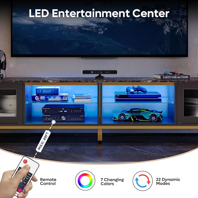- 【Vibrant LED Gaming TV Stand】Bestier tv stands for living room features remote control 7-color LED lights and 22 dynamic modes to easily customize your favorite lighting mood and immerse you in an immersive movie watching or gaming experience