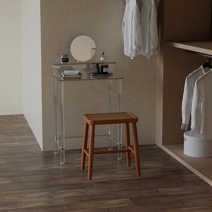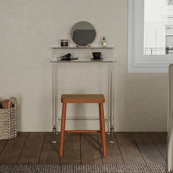 - Sleek & Sturdy Material - This small vanity is made entirely of high-quality clear acrylic, seamlessly integrated molding, sleek delicate, and durable. Its unique material properties make it easy to maintain and clean daily, keeping it as bright as new.