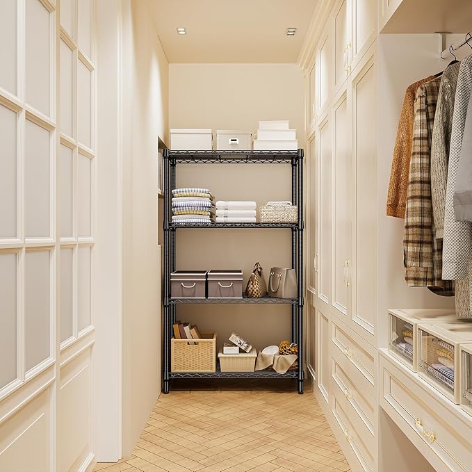 1000 lbs 4 Tier Shelf Metal Storage Shelves Shelving Wire Rack Heavy Duty Closet Organizers for Garage Kitchen Bathroom Laundry Black 15.7" D x 33.5" W x 59.5" H