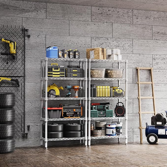 1250 lbs 5 Tier Shelf Metal Storage Shelves Wire Rack Closet Organizers for Garage Kitchen Bathroom Laundry White 11.8" D x 29.5" W x 59.5" H
