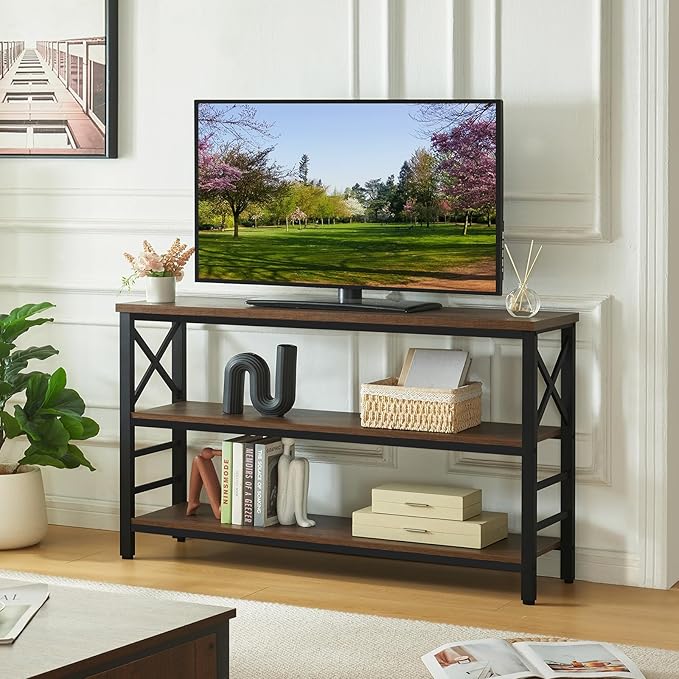 - Multi-Functional Table:The rustic console tables are versatile.3 tier open shelves space and thickened plates and metal frames make it ideal for a variety of scenarios. Based on these advantages,it can be easily used as a sofa table,an entry table,a bookshelf, and even a TV stand in daily life.