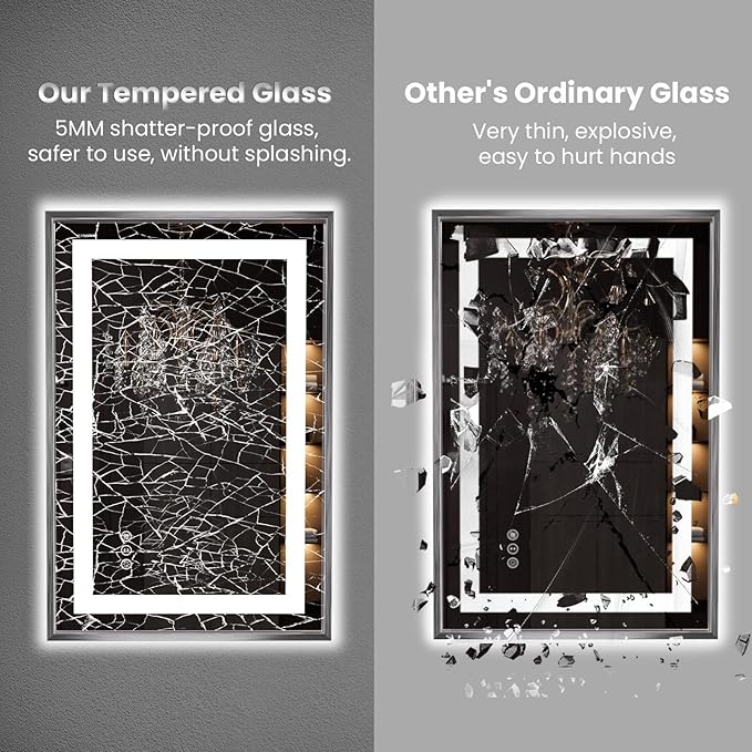 - [Shatterproof & Safe to Use]: Our mirrors are made of durable tempered glass, will not get broken easily, and even it's broken, it will not shatter to sharp pieces, no harm; With the epoxy coat, our mirror can corrosion proof for longlife
