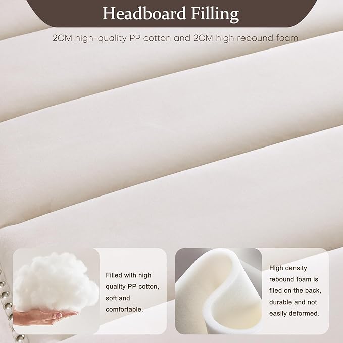 - 【Comfortable Support】Equipped with 2cm of PP cotton and 2cm of high-resilience foam, the headboard offers a plush and supportive foam filling, guaranteeing a cozy and indulgent experience while lounging in bed.