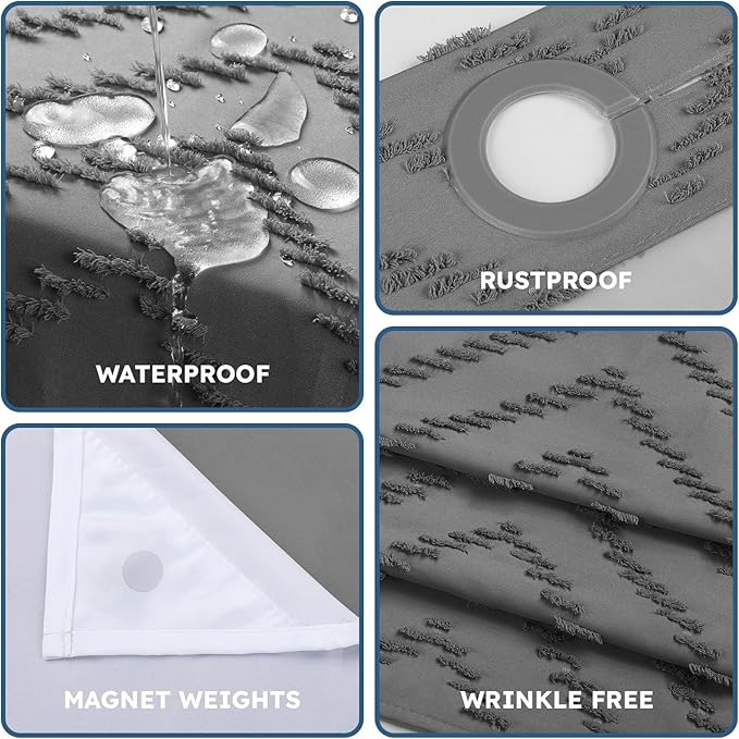 - No Hook Shower Curtain Set: This bathroom shower curtain adopts built-in rings design, allowing for easy installation in a second. You don't have to buy hooks or remove the curtain rod