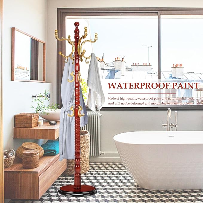 - 【Details Matter】We know you are worried about whether wood is healthy. Please rest assured that thick wood hanger using high quality wood. Safe paint. The coat hanger stand's hooks surface is designed with rounded arc which is smoother without burrs, no damage to clothes.