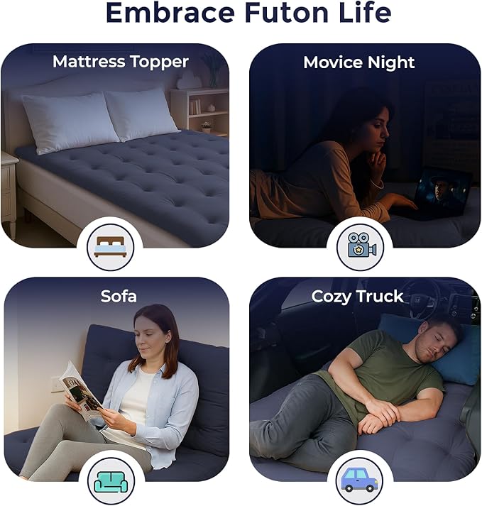 - JAPANESE-INSPIRED FLOOR COMFORT - Experience traditional floor-sleeping comfort with a modern twist. This 5-layer futon mattress promotes better spinal alignment, relieves pressure, and enhances sleep or seated relaxation.
