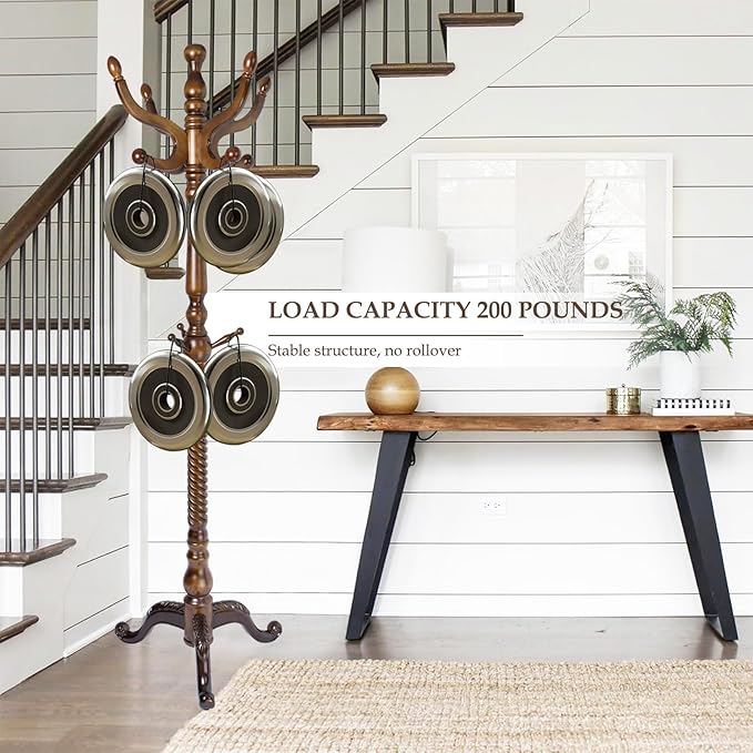 - 【A Stable Tree】 What good is a coat rack that falls over the moment you put a coat on the hook? Our coat tree made with 3.8" bold, solid wood pole and 24" diameter tri-legged base heavy-duty base, so you can tidy your room with confidence.