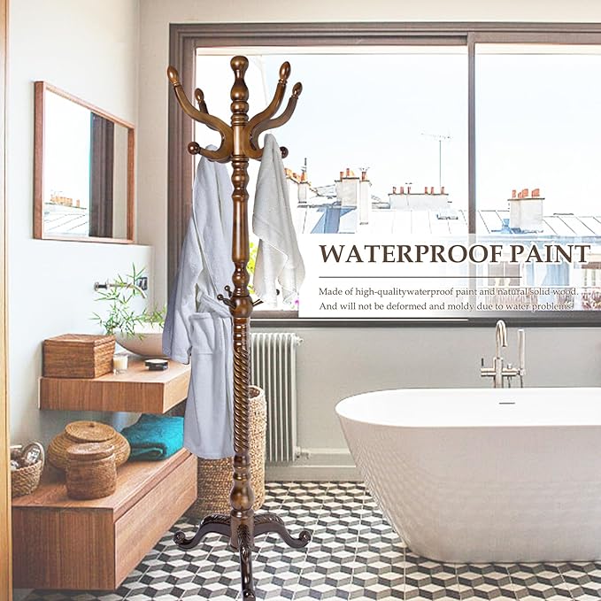 - 【Details Matter】We know you are worried about whether wood is healthy. Please rest assured that thick wood hanger using high quality wood. Safe paint. The coat hanger stand's hooks surface is designed with rounded arc which is smoother without burrs, no damage to clothes.