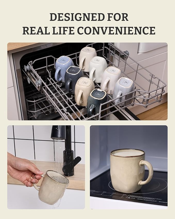 - 【Coffee Mugs Set of 4】Each mug holds up to 13oz of your favorite beverage. Great for Latte, Hot Tea, Cappuccino, Mocha, Cocoa, Milk, Hot Chocolate, smoothie,and more. Suitable for families and gatherings.
